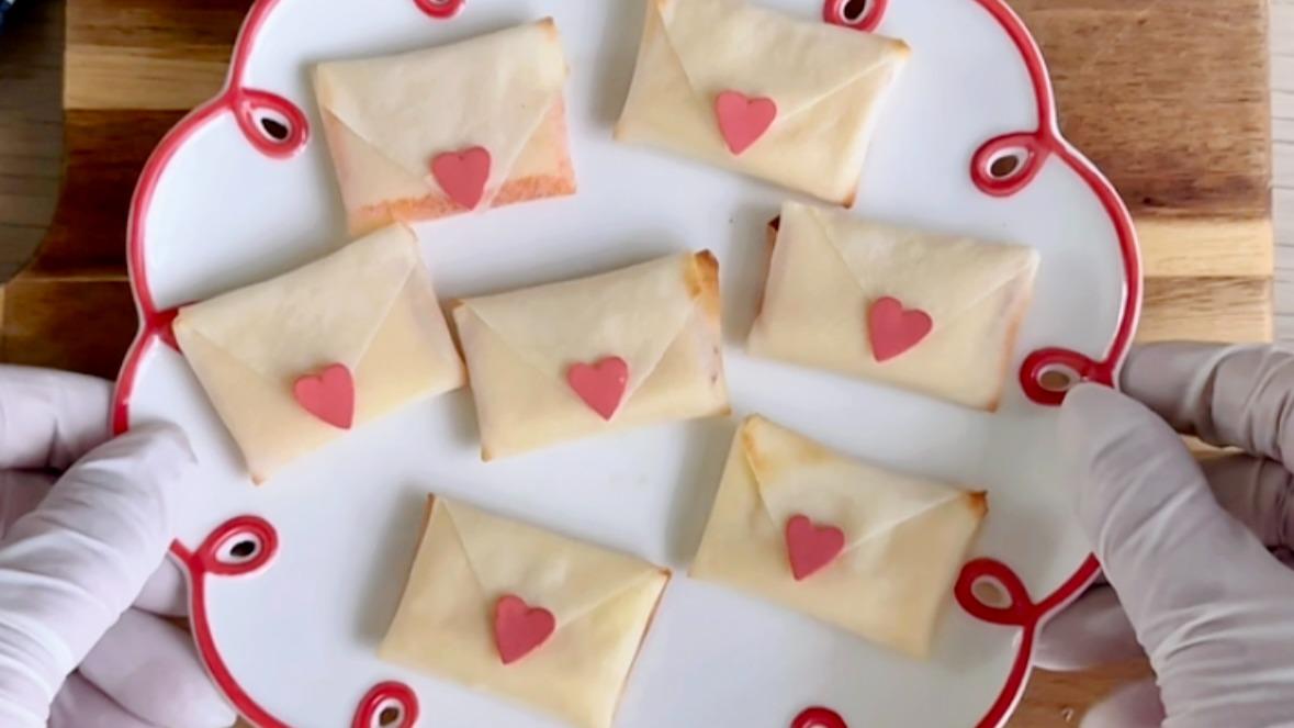 報告春巻きの皮が余ってたら作って!中身はとろ~りハムチーズのラブレター春巻き【バレンタインレシピ】