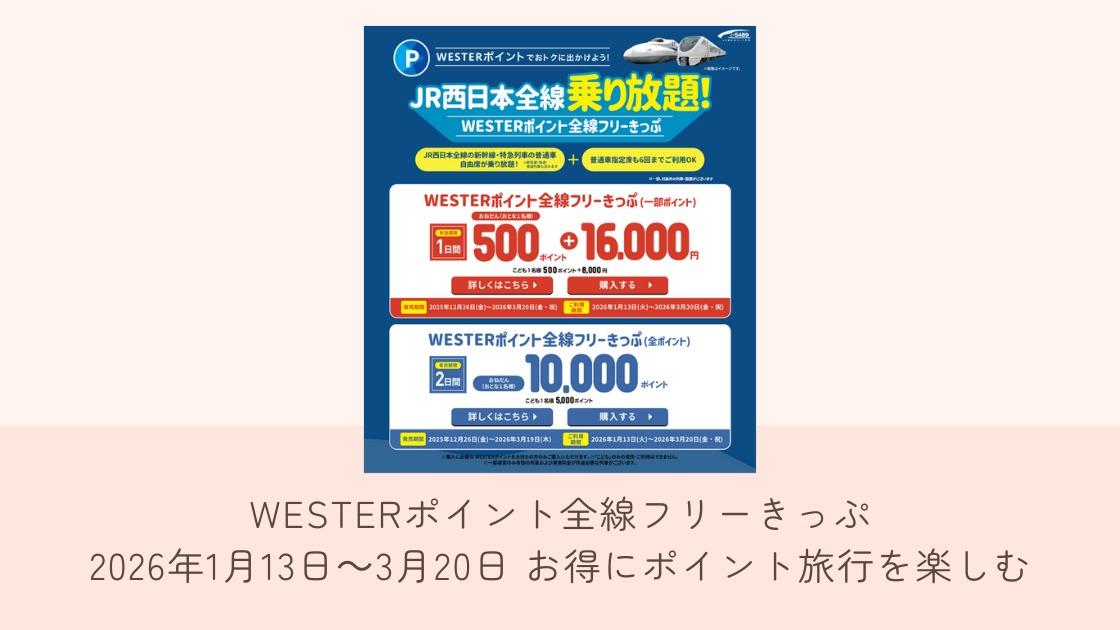 報告WESTERポイント全線フリーきっぷ 2026年1月13日~3月20日 お得にポイント旅行を楽しむ