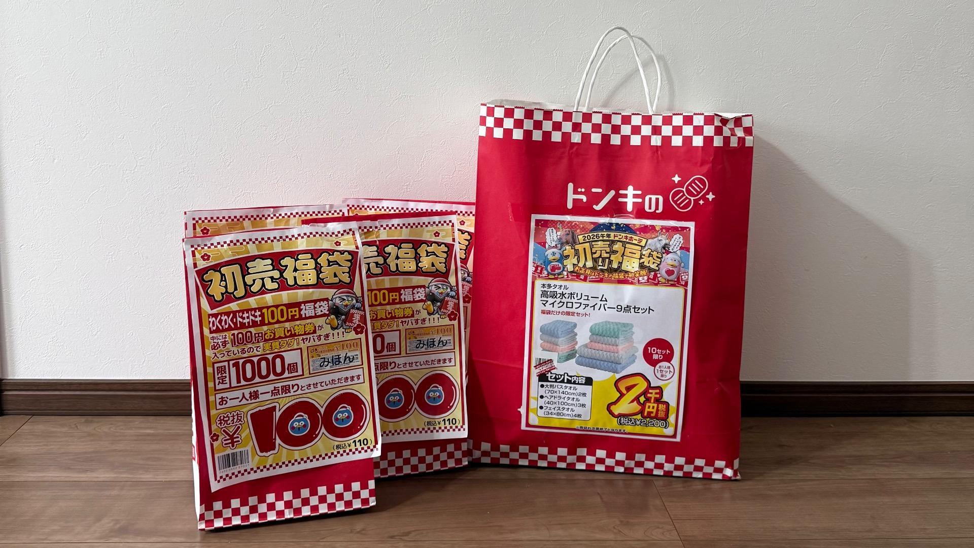 報告ドンキの初売福袋!『100円福袋』の中身は?タオル福袋は2000円でめちゃくちゃお得だった!