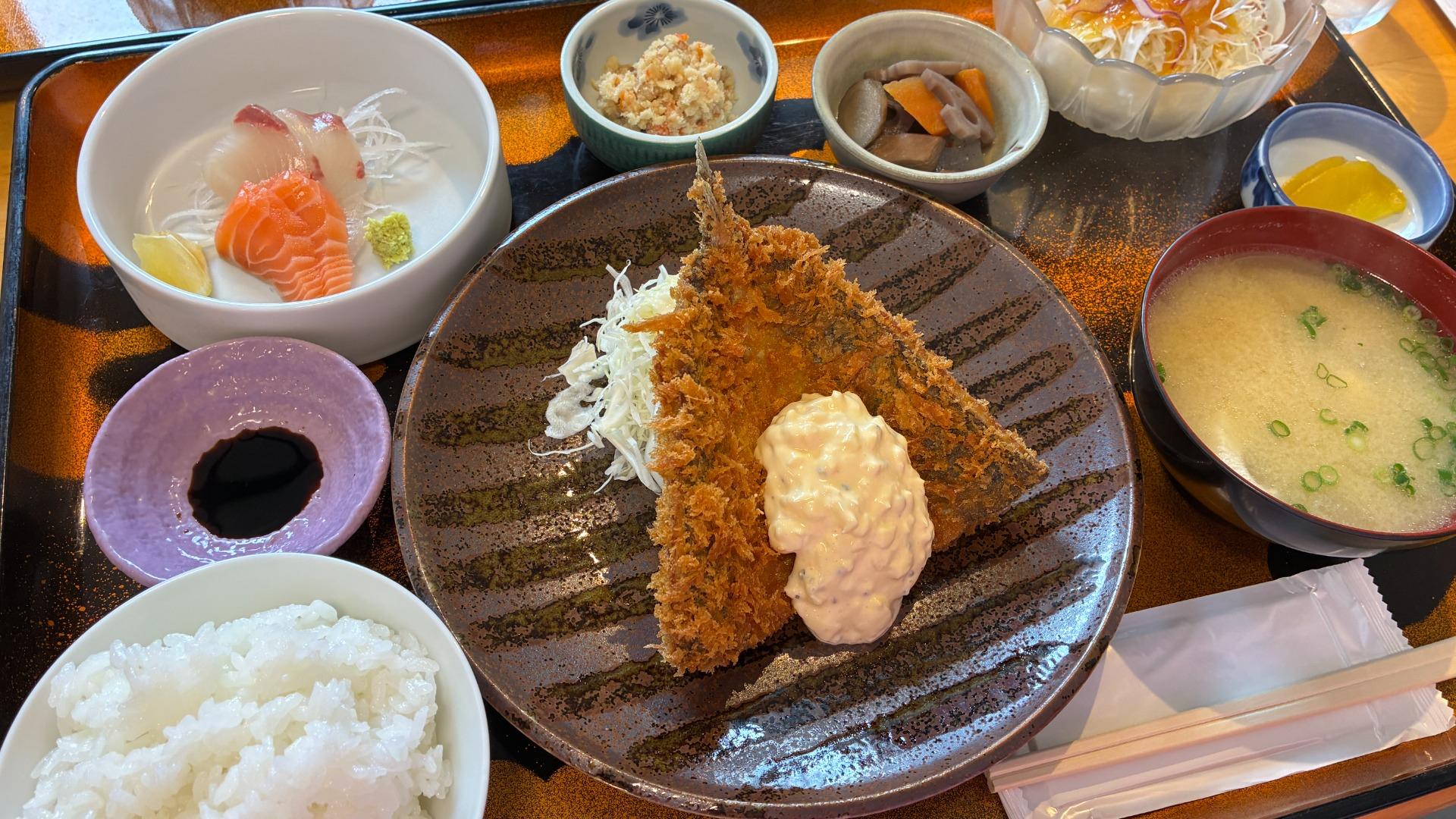 報告【沼津市】新鮮なお刺身盛り合わせに大判アジフライで大満足!沼津港で味わう平日数量限定ランチ定食