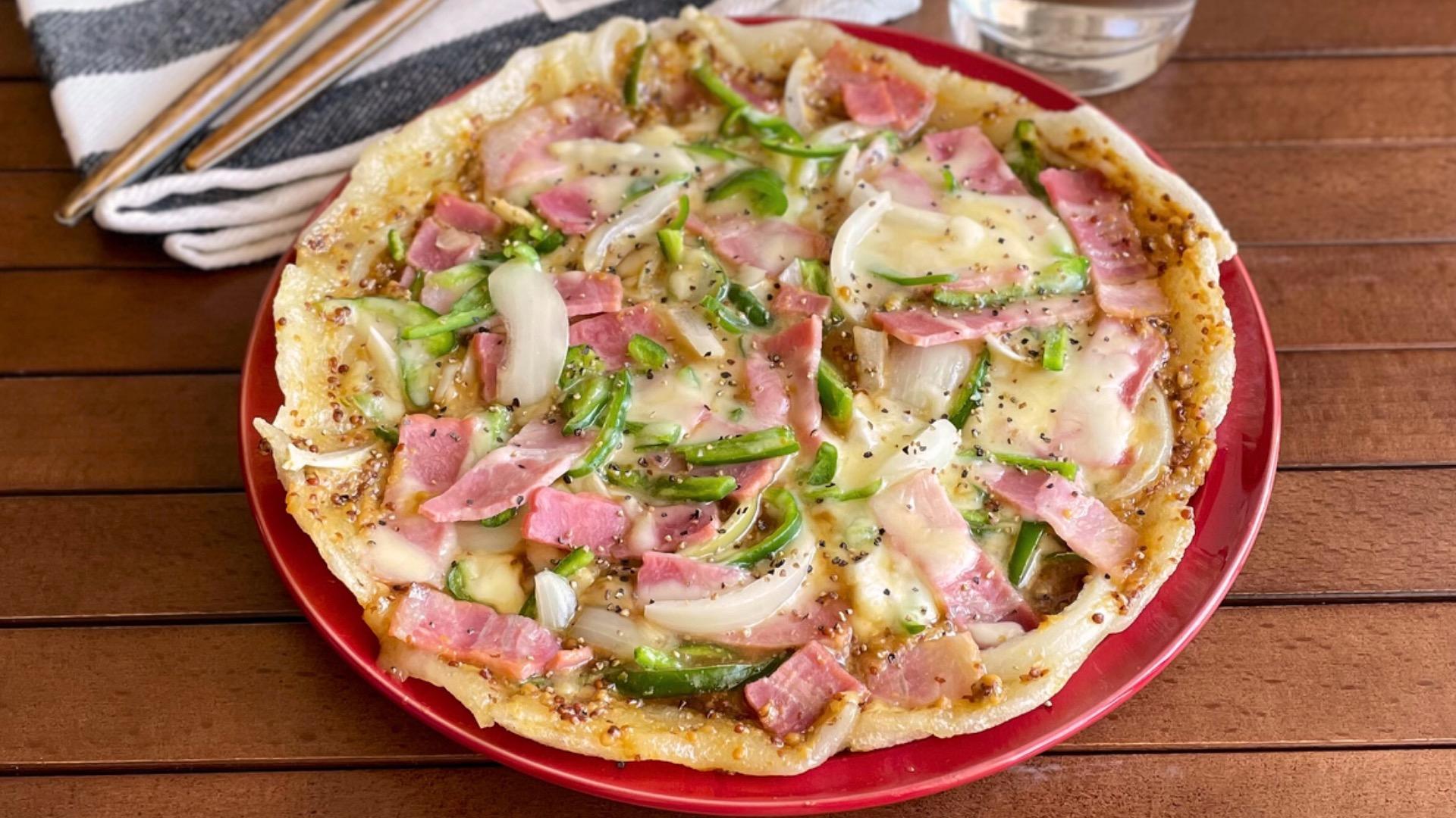 報告「余ったお餅が取り合いに!」カリカリもちもち【ハニーマスタードお餅ピザ】フライパン1つで簡単