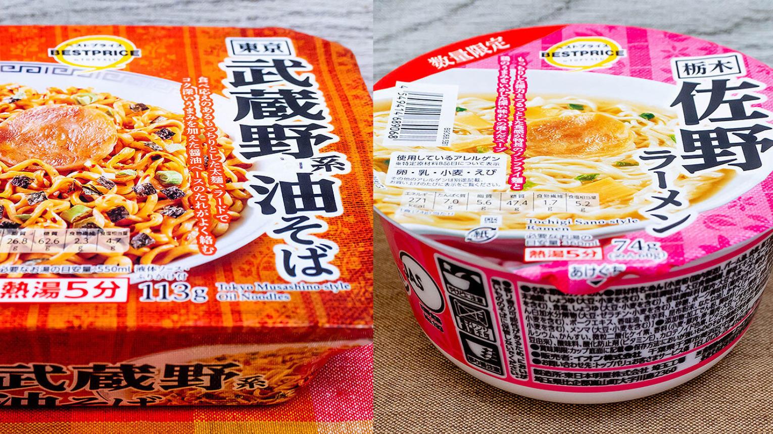 報告イオンの激安ご当地カップ麺「武蔵野系油そば」と「佐野ラーメン」どんな味?