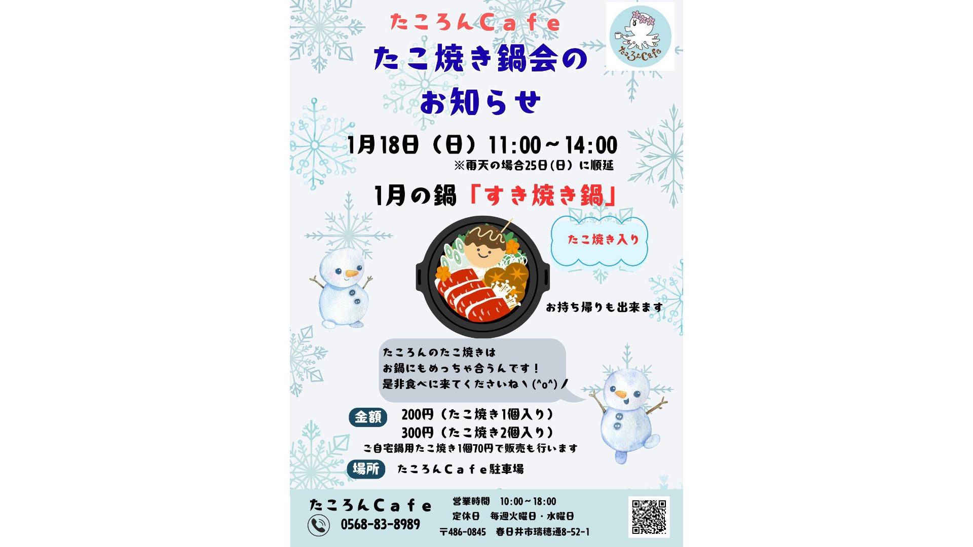 報告【春日井市】1月はすき焼き鍋!1/18(日)たころんCafeで「たこ焼き鍋会」が開催。