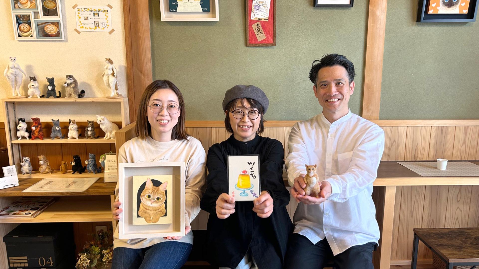 報告【度会町】店内がネコだらけ!宮リバー度会パーク近くのカフェで絵画、己書、羊毛フェルトの作品展 ~6月