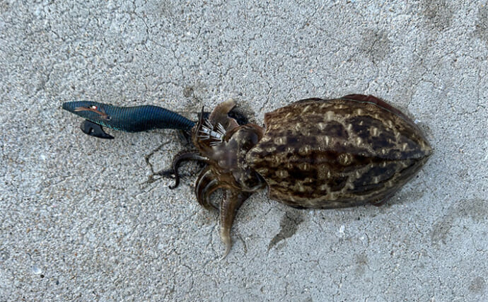 報告堤防から1kg級モンゴウイカ手中!【熊本】派手なシャクリからの長めステイでヒット