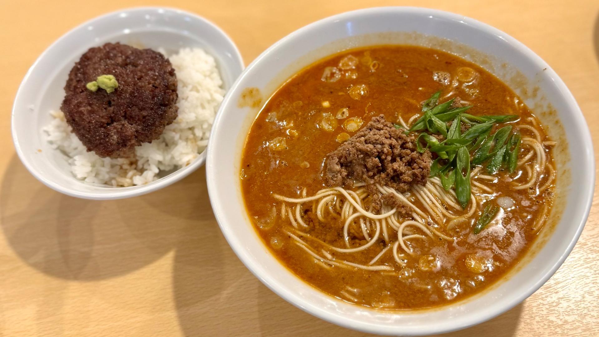 報告朝7時から提供する和牛レアハンバーグ丼が人気のラーメン店!牛肉の旨味溢れる丼とかけラーメンが最高!