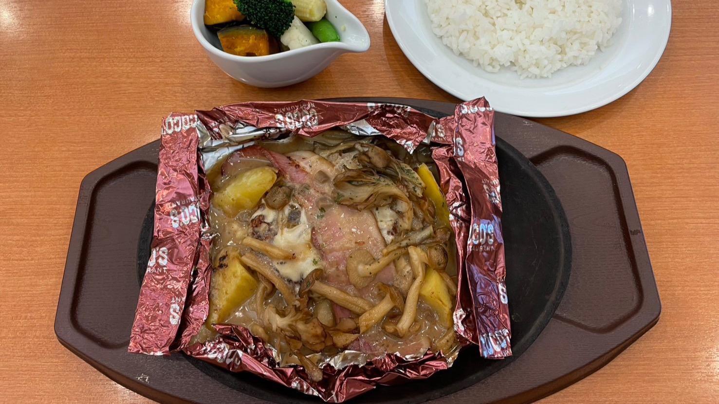 報告【ココス】10月限定!とろ~り濃厚クリームが最高な「きのこと燻製ベーコンの包み焼きハンバーグ」