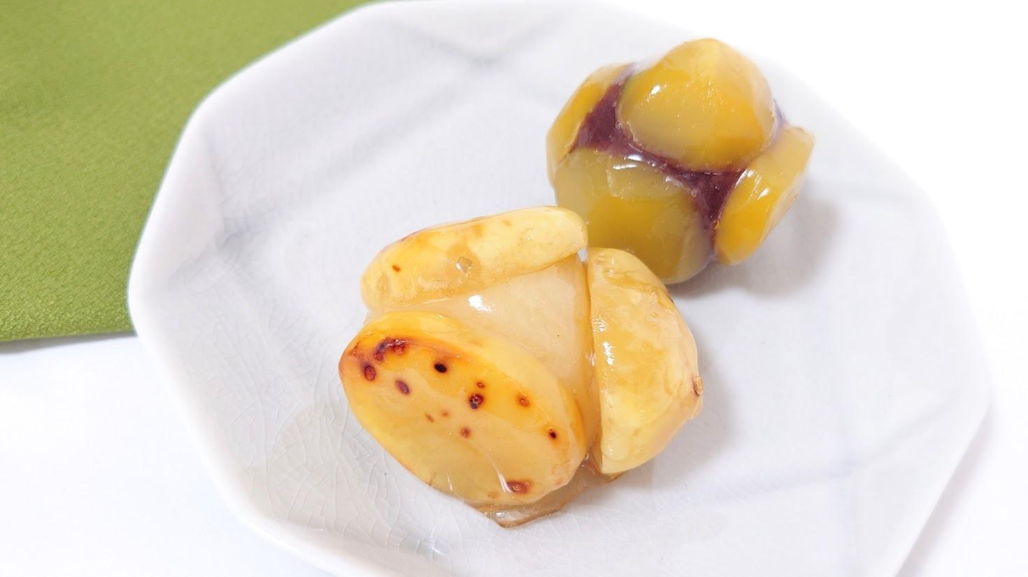 報告しっとりもちもちの…あけび!?「文銭堂本舗」さんの秋の風物詩が今年も登場中♪中には黄金色の栗がごろり