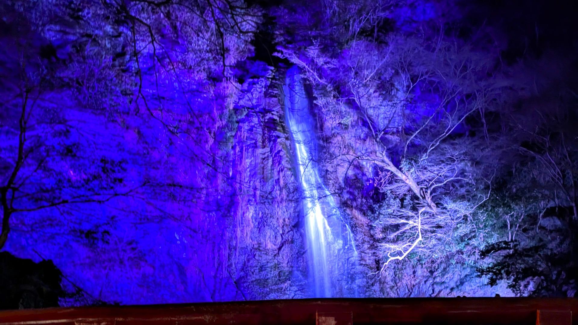 報告【箕面市】「箕面の森 Winterプロムナード2025」開催中。光で彩られる箕面大滝の様子です。
