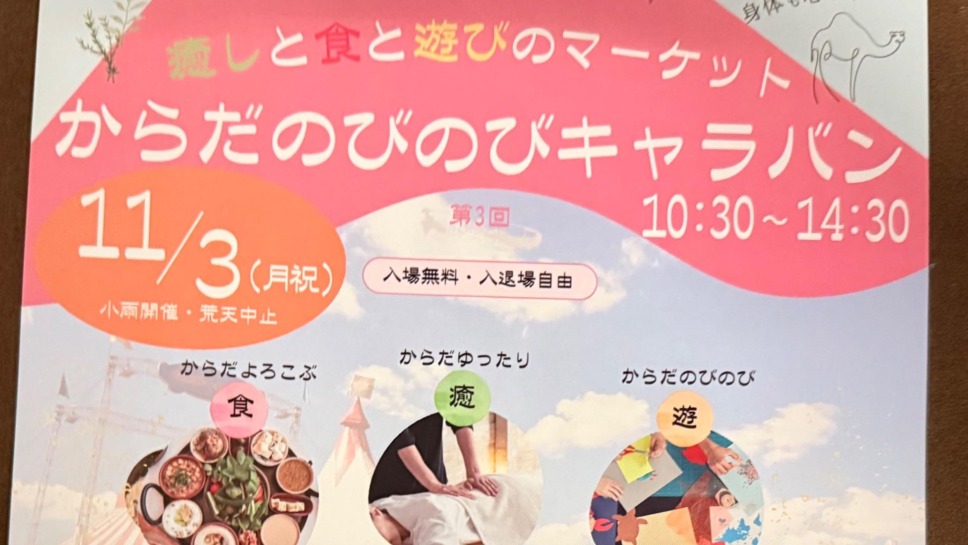 報告【藤枝市】癒しと食と遊びのマーケット「からだのびのびキャラバン」が上伝馬商店街で11月3日に開催!