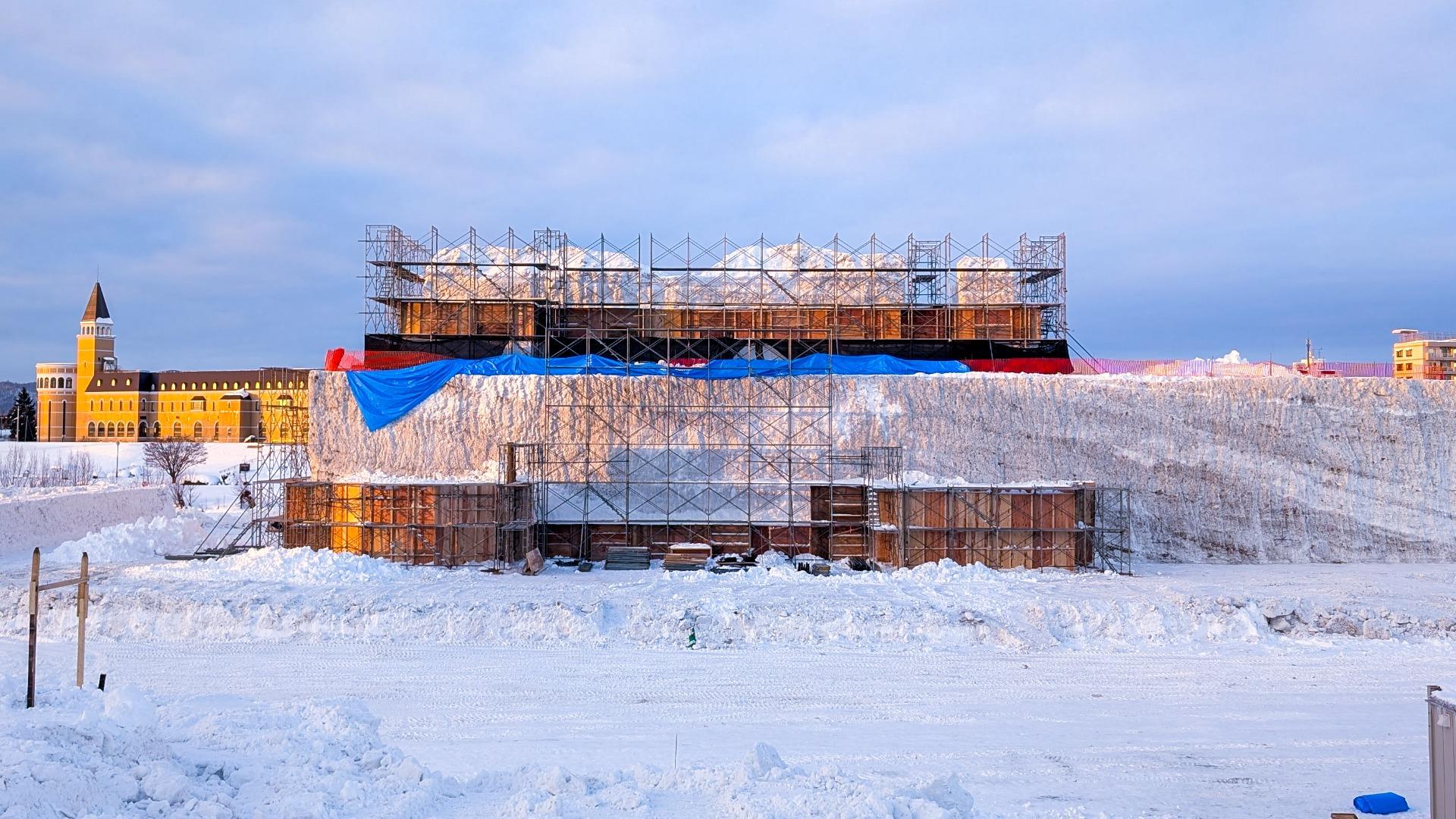 報告【旭川市】May J.も登場する旭川冬まつりは2/6開幕! 遮光ネットに覆われている大雪像制作の風景