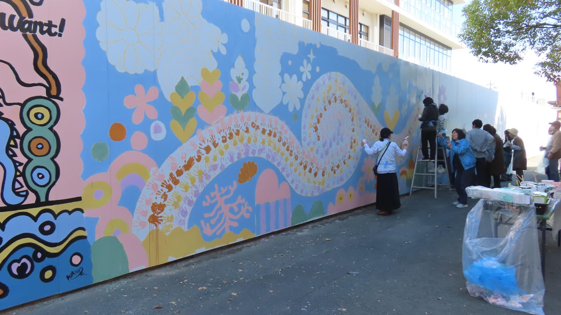報告【宇治市】CSコーディネーターがつなぐ学校と地域 西小倉中全校参加、地域と共に描いた壁画アート