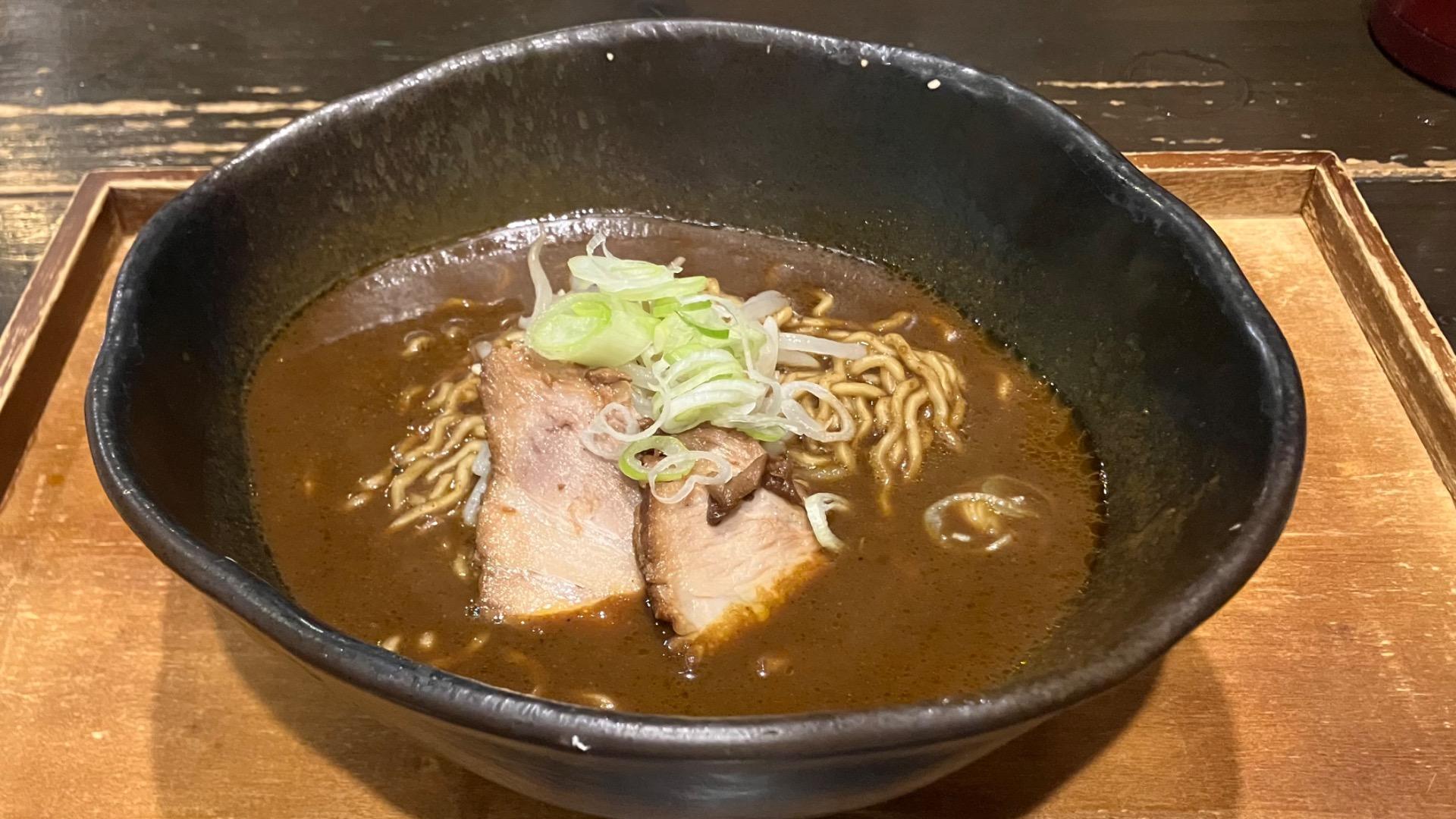 報告ビターなテイストを醸し出す唯一無二なカレーラーメンが味わえるカフェ百名店。気になる苦味はなんだろう