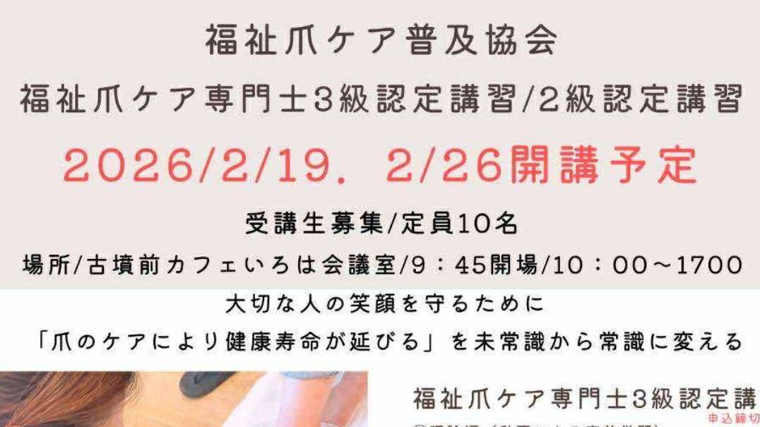 報告【堺市堺区】「古墳前カフェ IROHA」会議室にて福祉爪ケア専門士の講習が開講されます。