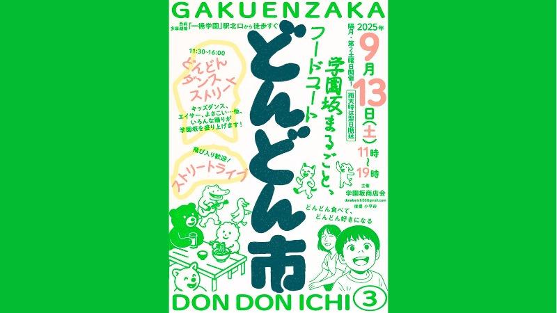 報告9/13(土)第3回「どんどん市」開催!一橋学園駅北口の学園坂商店街で食・音楽・ダンスの祭り/小平市