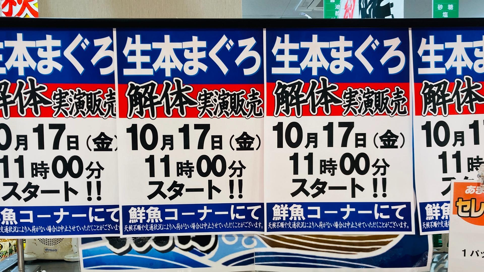 報告9/20(土)11時〜スーパーの鮮魚売り場で生本まぐろ解体実演!迫力と美味しさを堪能/東久留米市