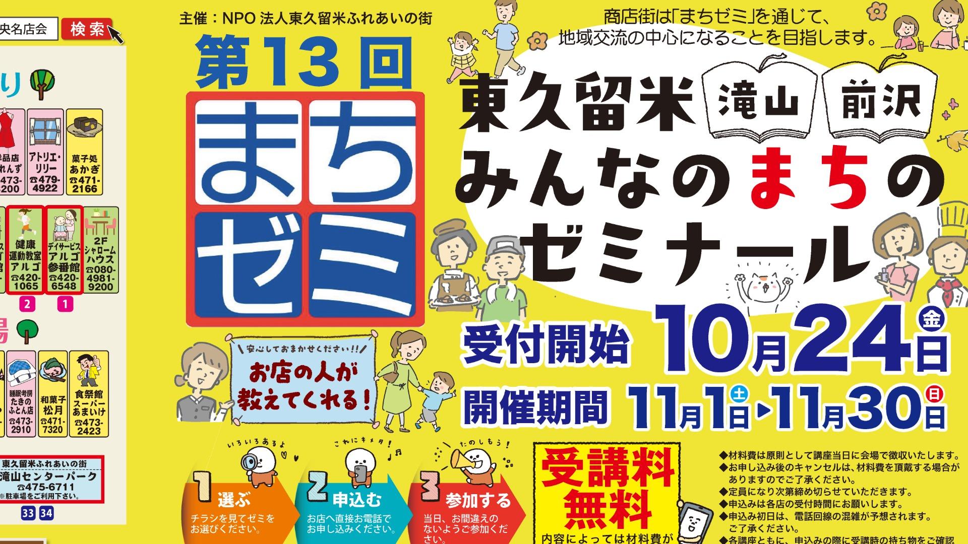 報告「まちゼミ」申込み受付中!滝山と前沢の商店街で美容・健康・暮らしの無料講座(11月開催)/東久留米市
