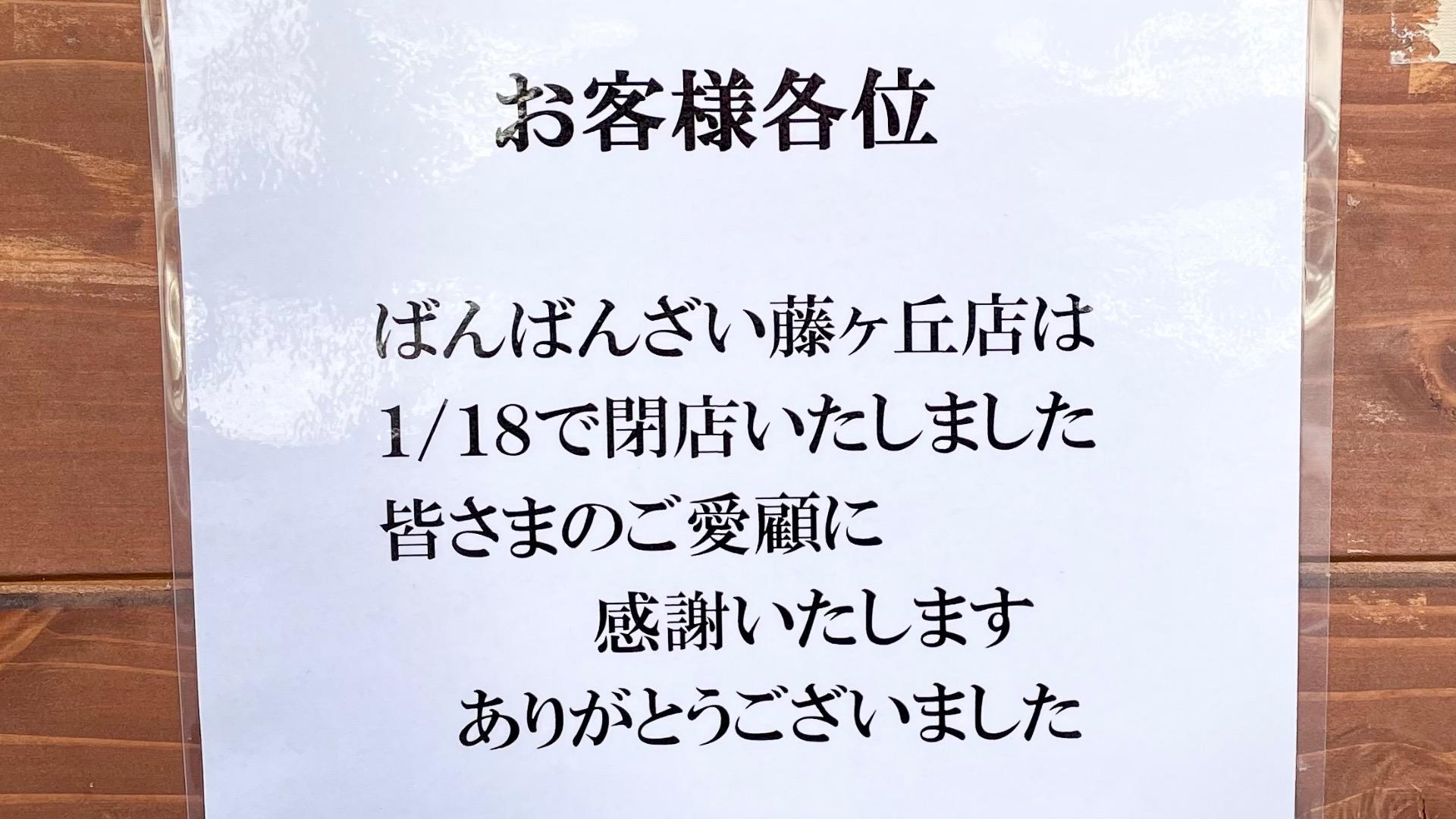 報告【名古屋市名東区】ランチタイムの強い味方450円弁当の「ばんばんざい 藤が丘店」が閉店していました。