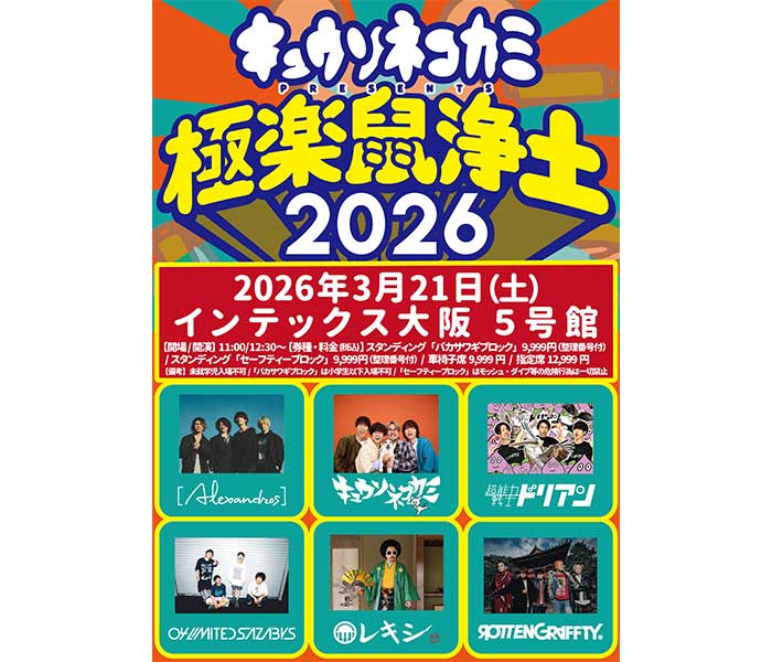 報告キュウソネコカミ、初の主催フェス 「極楽鼠浄土 at 神戸ワールド記念ホール 2025.3.20」 全曲ライブ音源が、配信スタート!