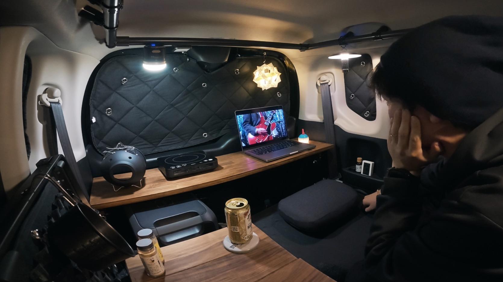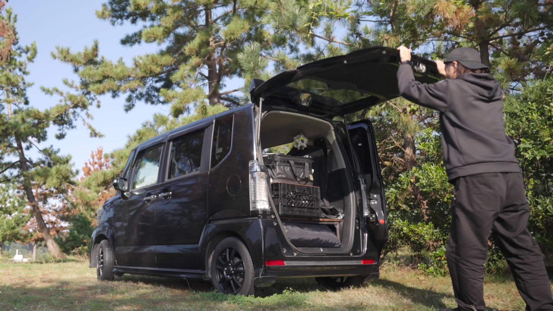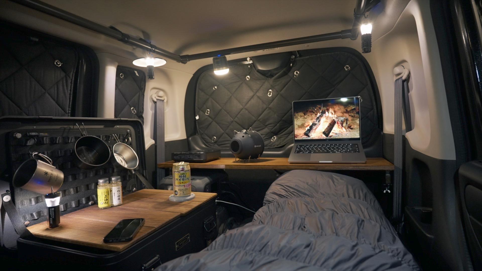 報告軽自動車=秘密基地!N-BOX車中泊で楽しむ“居酒屋ナイト”