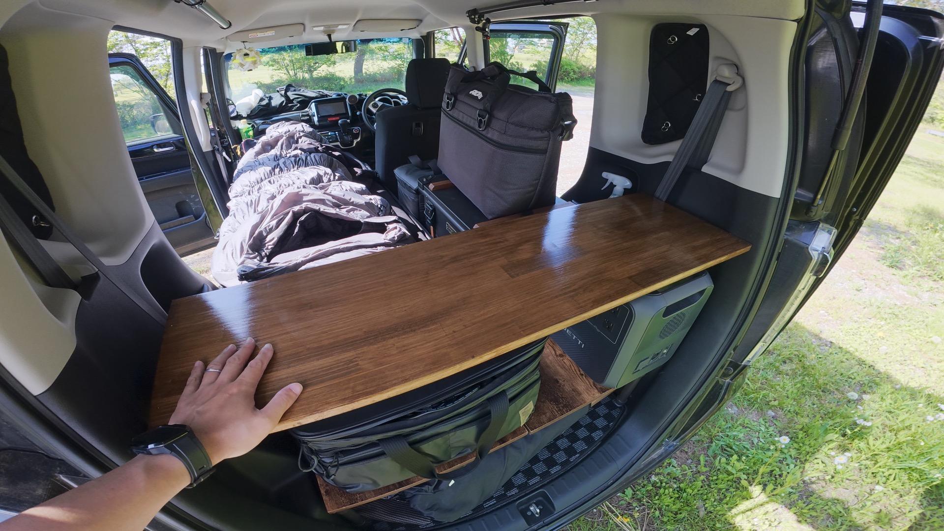 報告軽自動車でも極上空間!簡単DIYテーブルで叶える“快適すぎる車中泊ライフ”