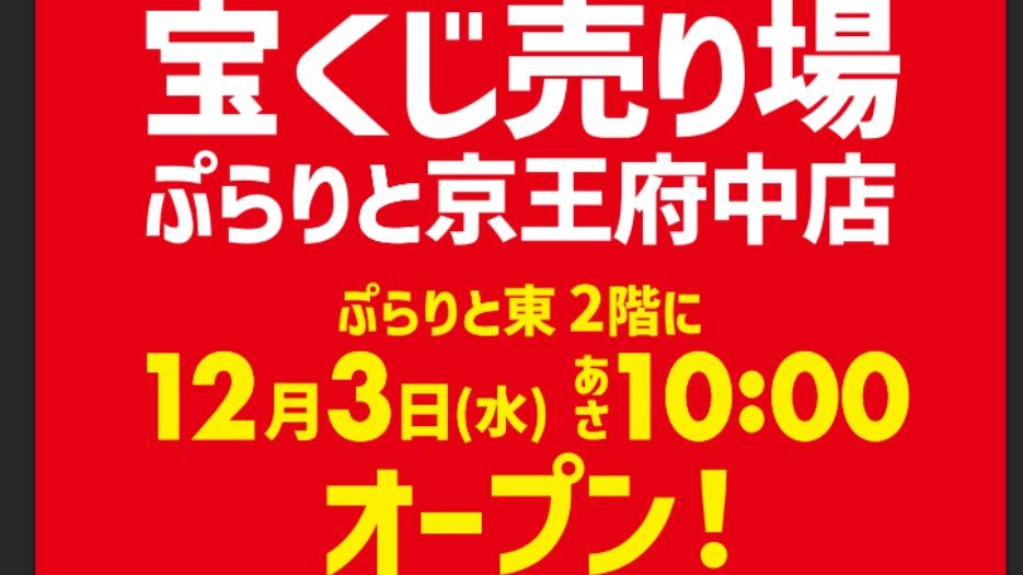 報告ぷらりと京王府中に宝くじ売り場がオープンしています!年末ジャンボ宝くじは23日まで!