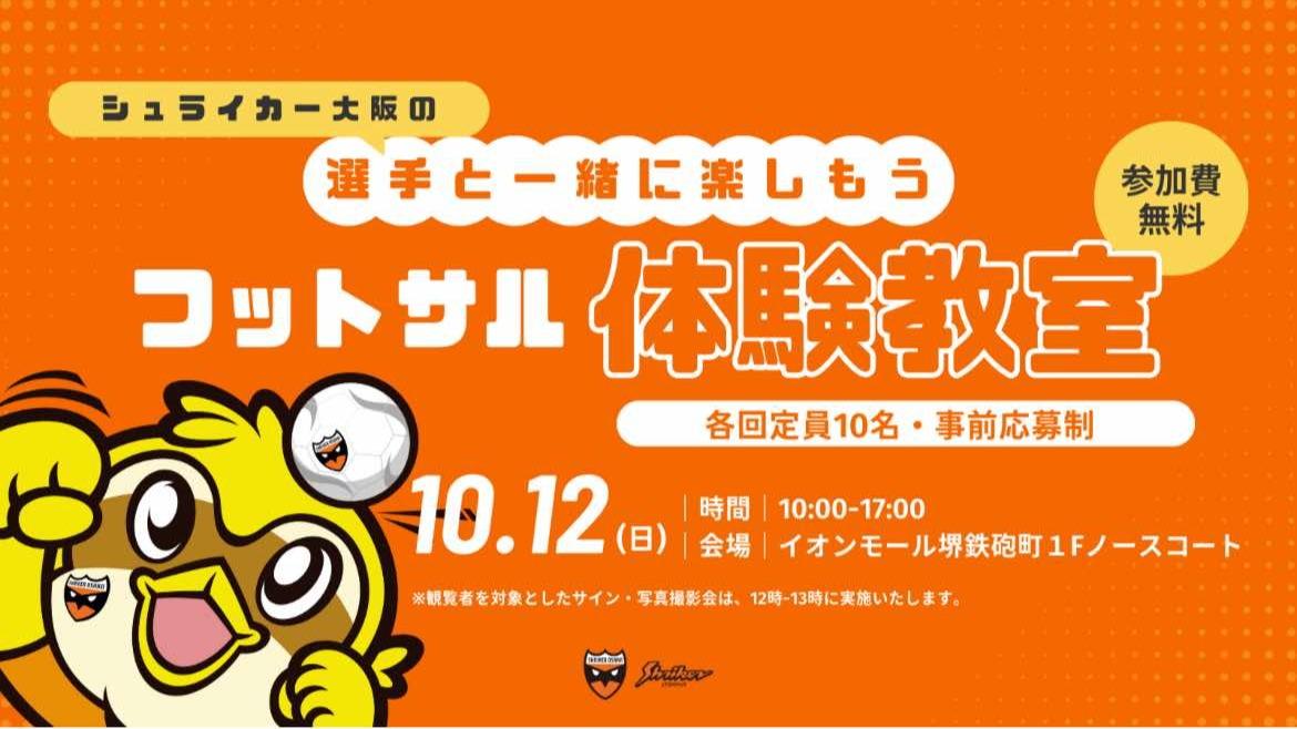 報告【堺市堺区】イオンモール堺鉄砲町にて、シュライカー大阪による「フットサル体験教室」が開催されます。