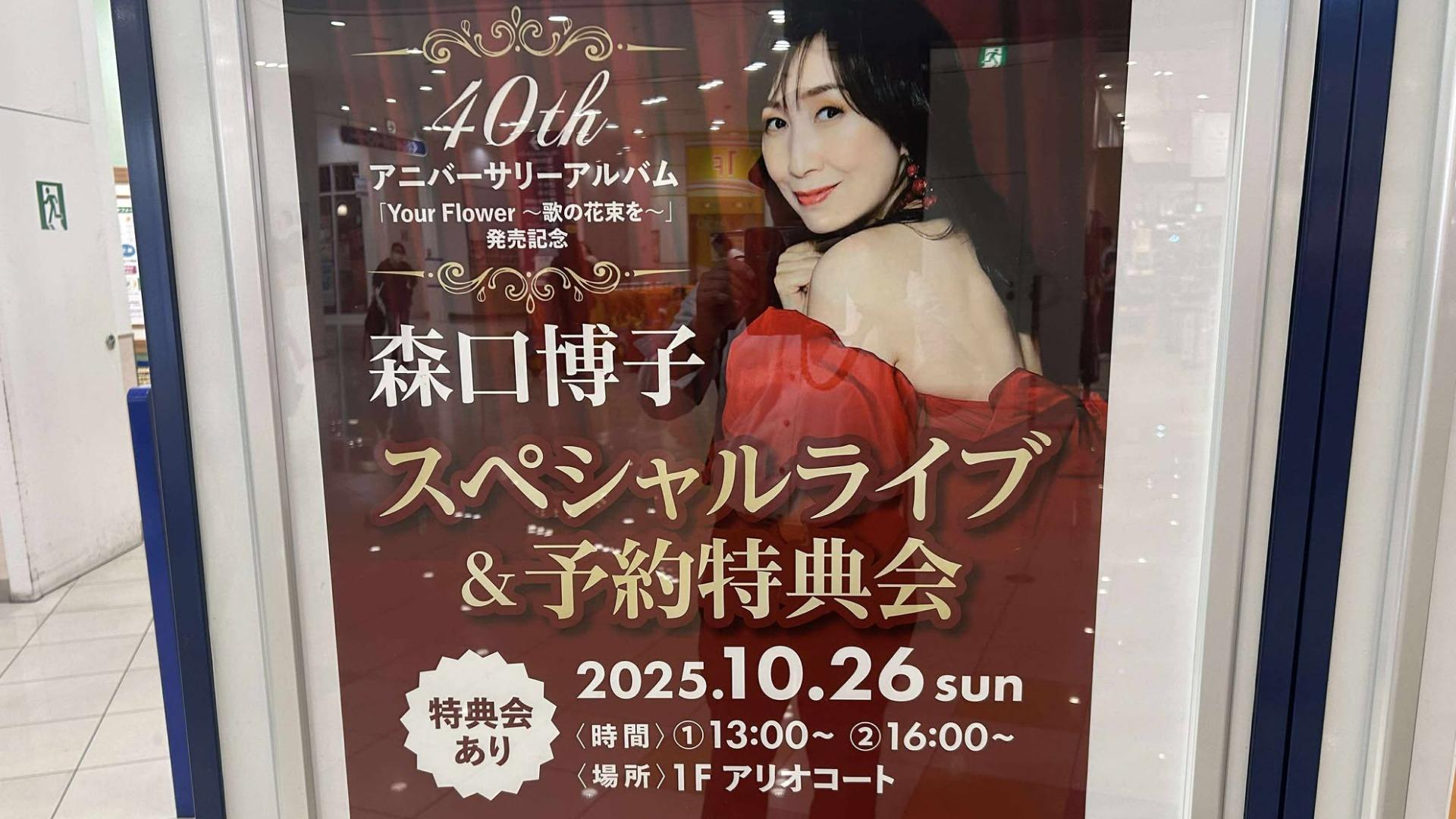 報告【堺市西区】アリオ鳳にて、2025年10月26日(日)「森口博子スペシャルライブ&予約特典会」開催!