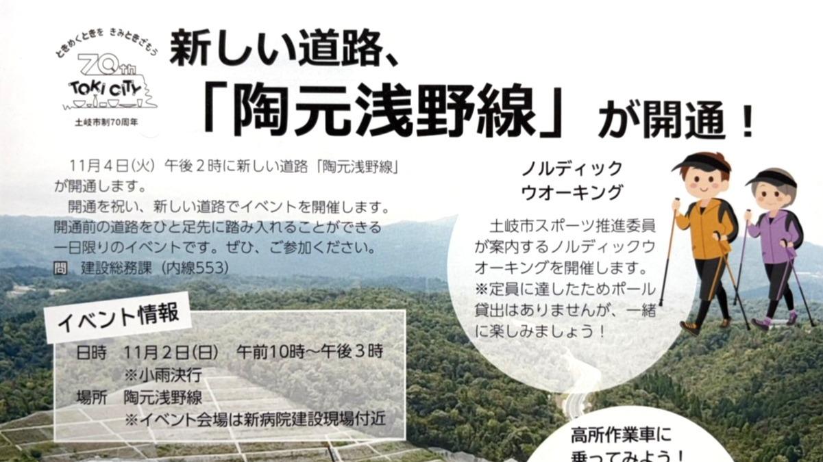 報告【土岐市】間もなく開通の陶元浅野線を歩けるまたとないチャンス! 開通記念イベントが11/2開催