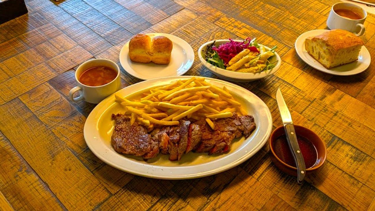 報告【大阪市】旨い!柔らかい赤身のジューシーアンガスステーキ!選べるグラムとお得なセット!パン&デザート