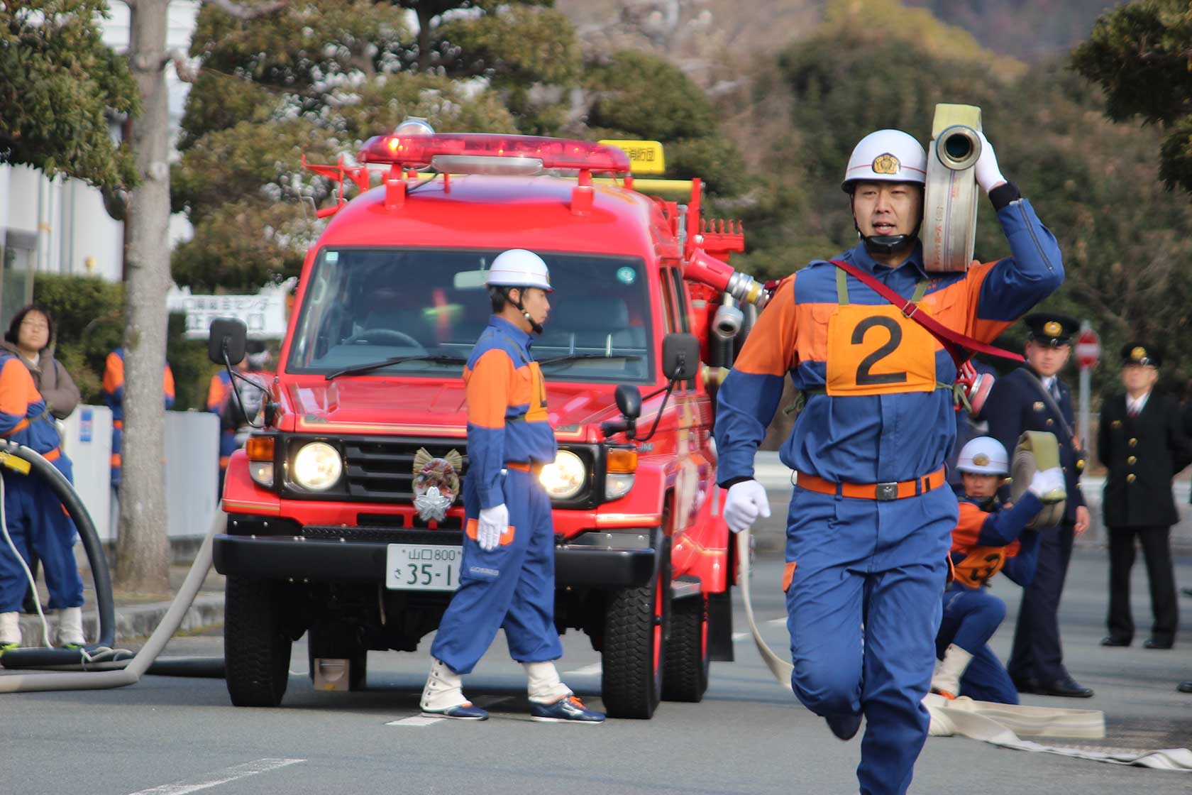 報告1月11日に山口市消防出初式 観閲行進やもちまきなど南総合センターで