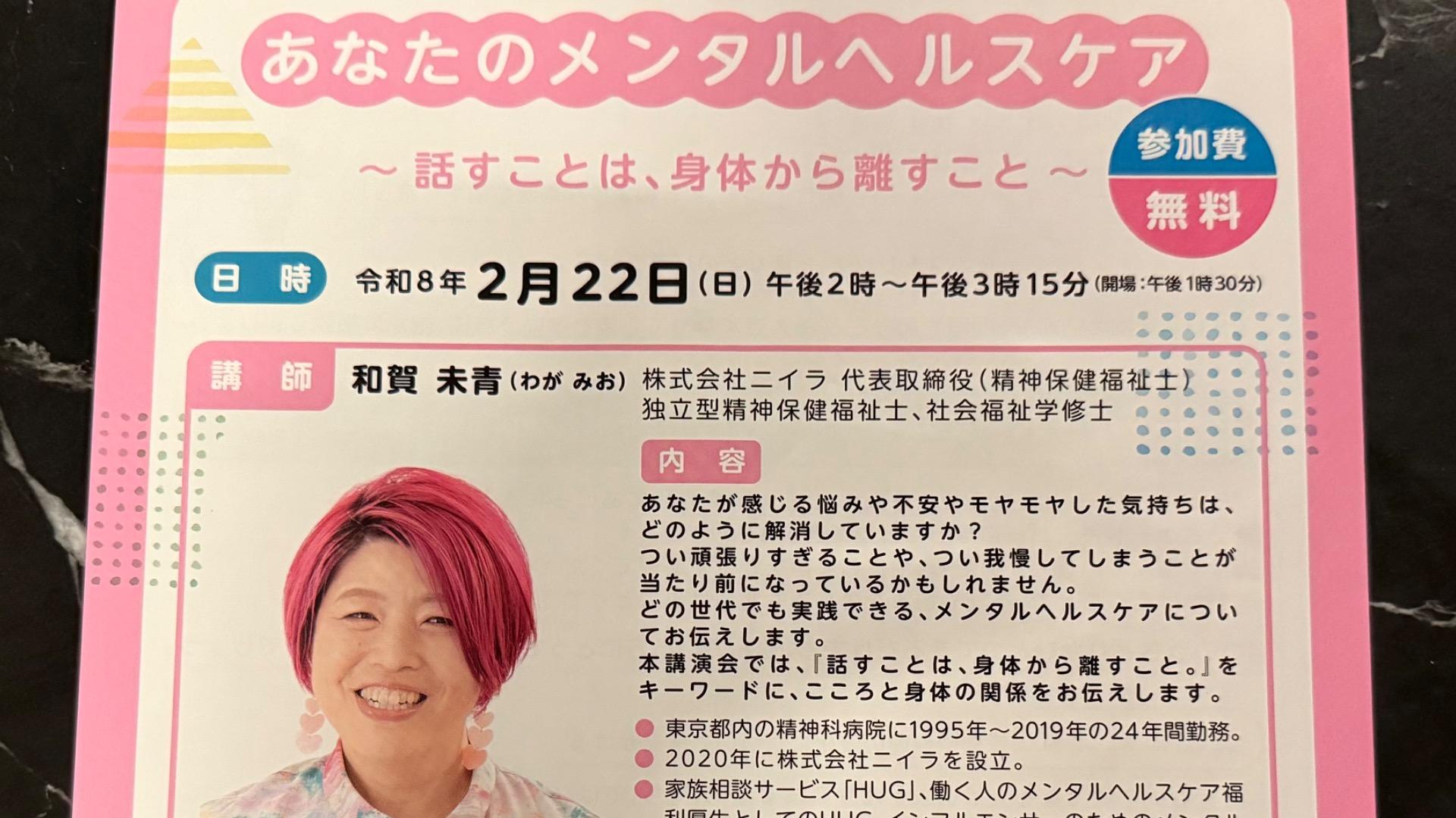 報告【藤枝市】参加費無料「あなたのメンタルヘルスケア」が生涯学習センターで2月22日に開催!