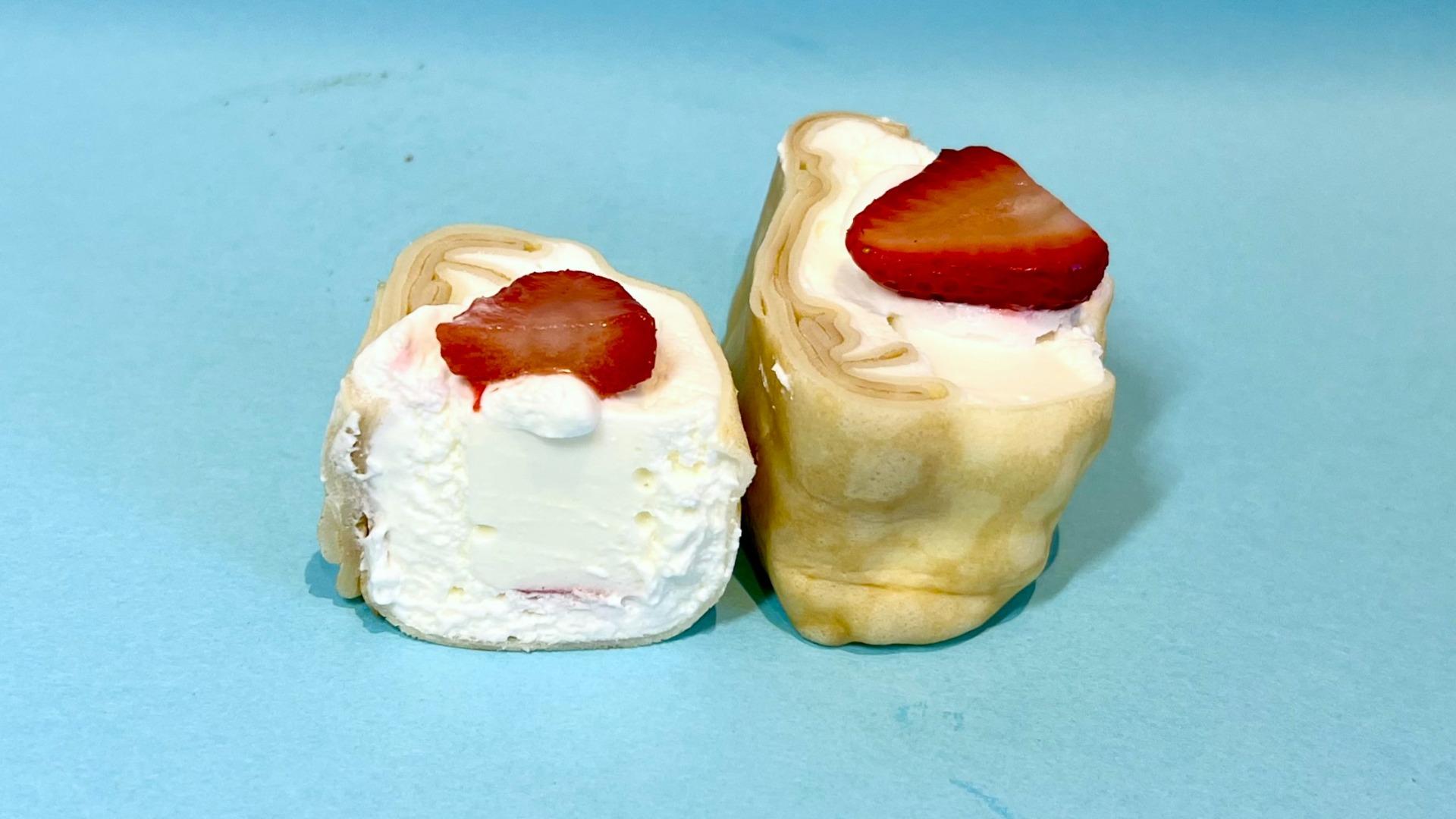 報告【ローソン】いちごクレープ×チーズケーキの新作登場!上品酸味、多彩な食感で飽きないおいしさ!