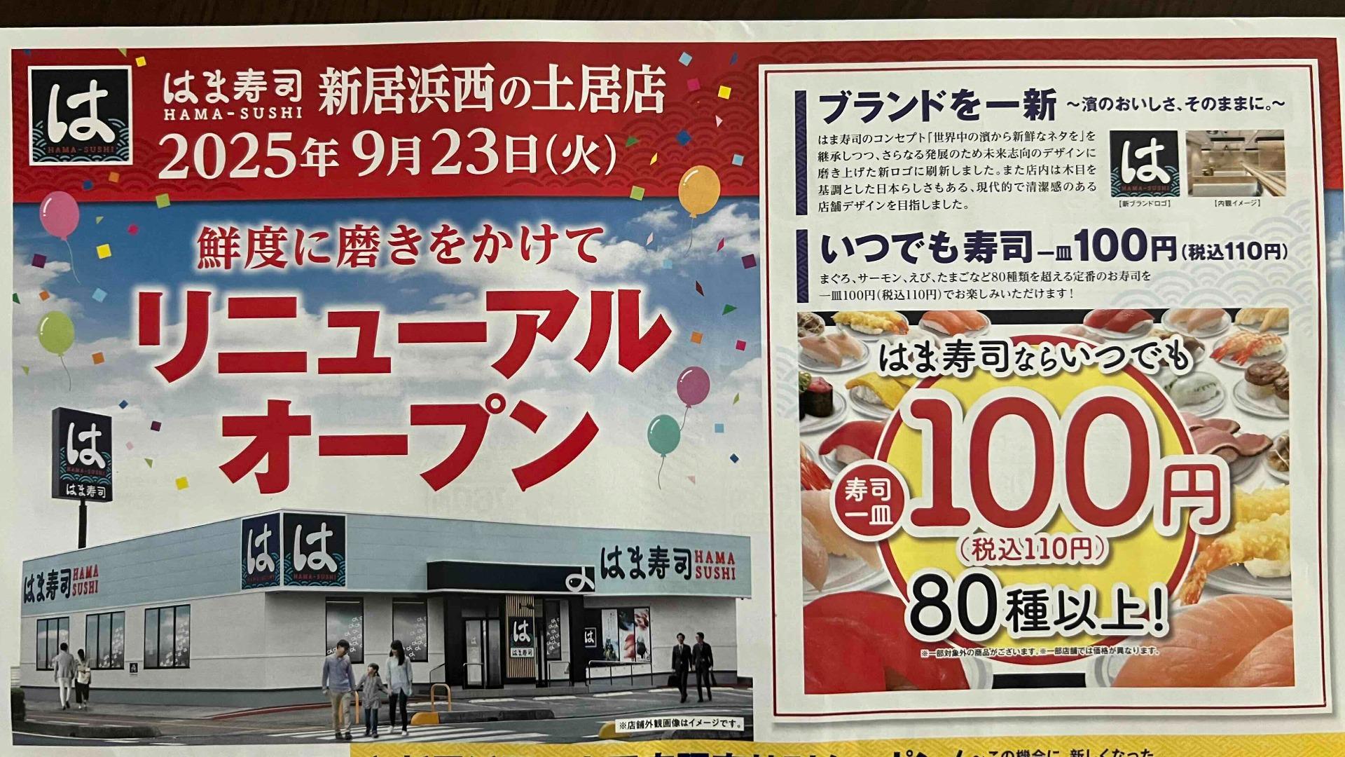 報告【新居浜市】はま寿司 新居浜西の土居店が改装のため休業中! リフレッシュオープンは9月23日(火)