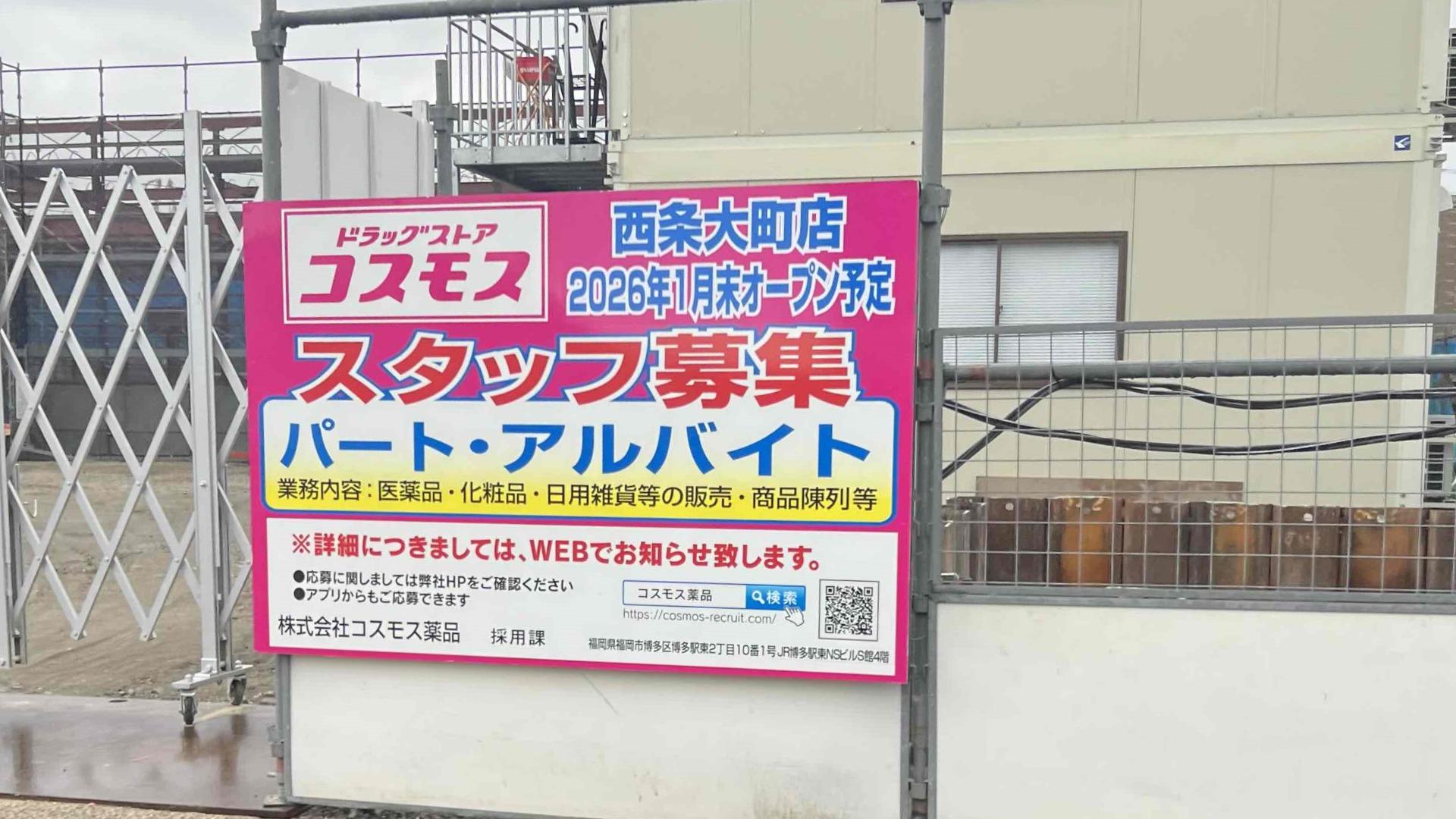 報告【西条市】ドラッグストアコスモスが西条市大町に新店舗を建設中! オープンは2026年1月を予定