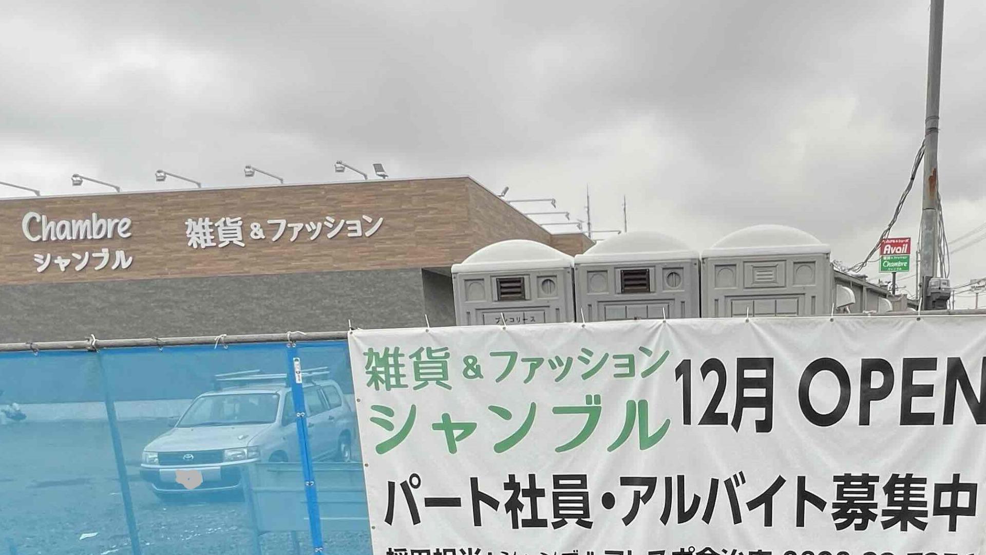 報告【西条市】新店舗の掲示が出ていました! 雑貨とファッションの「シャンブル西条店」が12月オープン予定