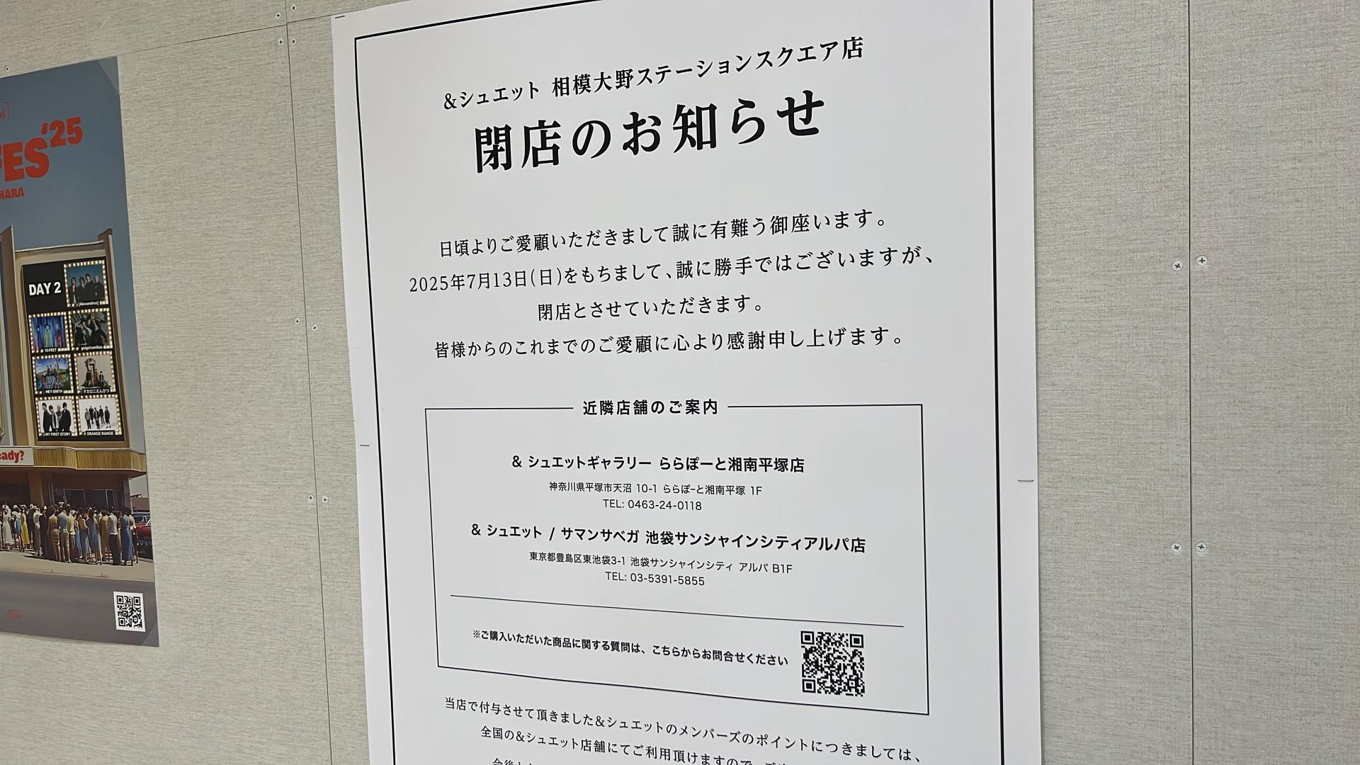 報告【相模原市南区】相模大野ステーションスクエア「& chouette」7/13に閉店