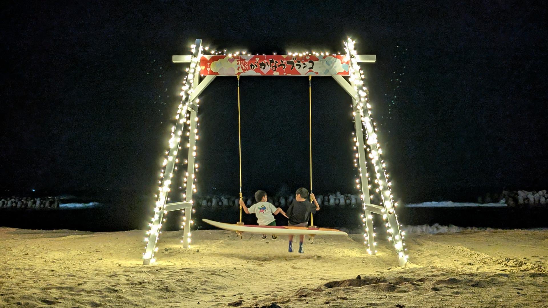 報告【遠賀郡岡垣町】波津海岸に新たなフォトスポット!光に揺れる「海のブランコ」と秋の夜長のビーチバル!