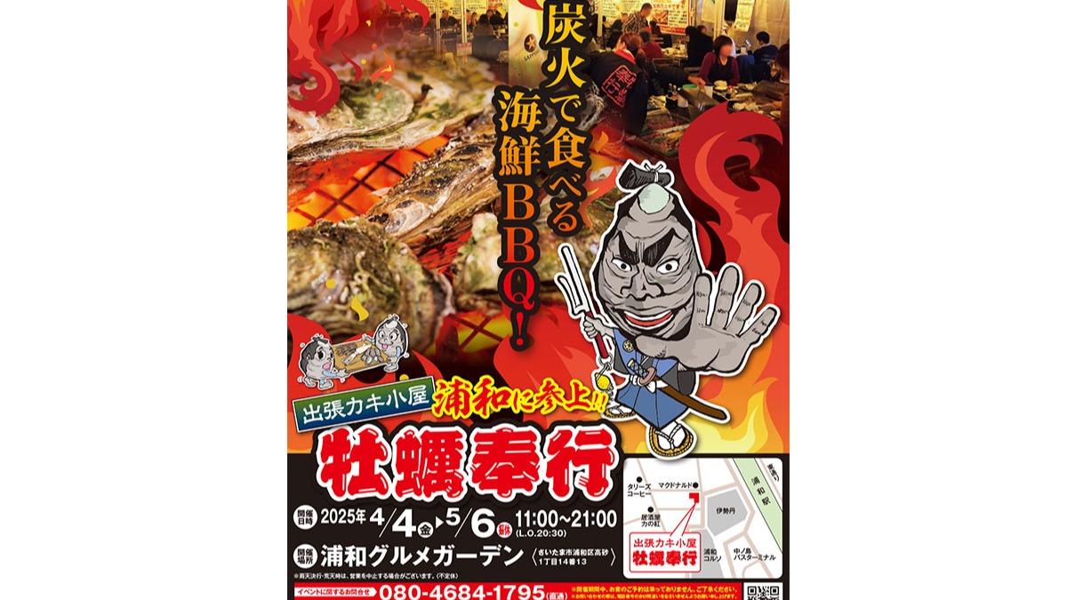 報告【さいたま市浦和区】出張カキ小屋「牡蠣奉行」が浦和に4/4〜5/6まで出店!炭火で食べる海鮮BBQ