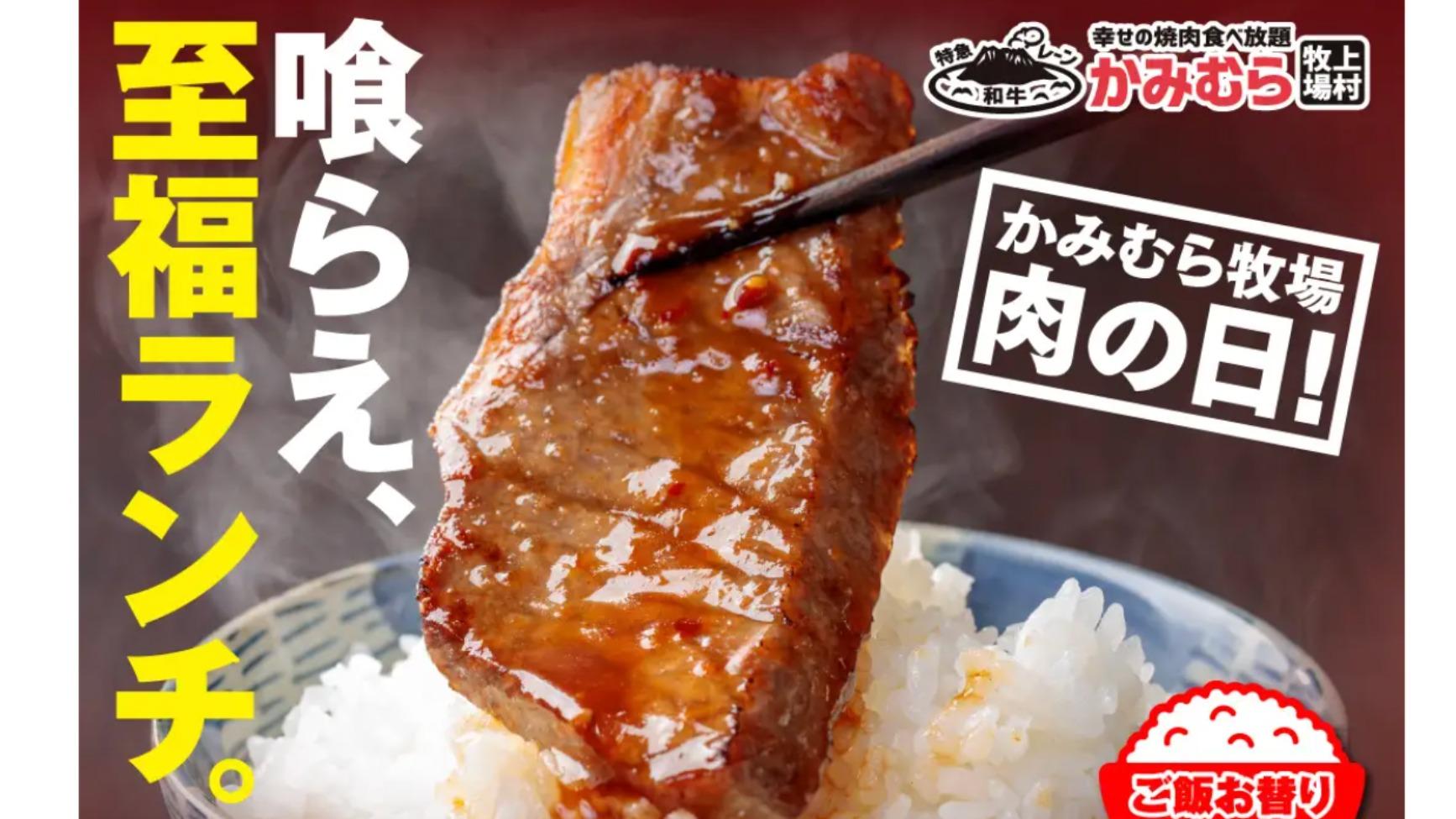 報告【かみむら牧場】焼肉ランチ2種が税抜1129円に。9月も「肉の日」企画やるんだって!