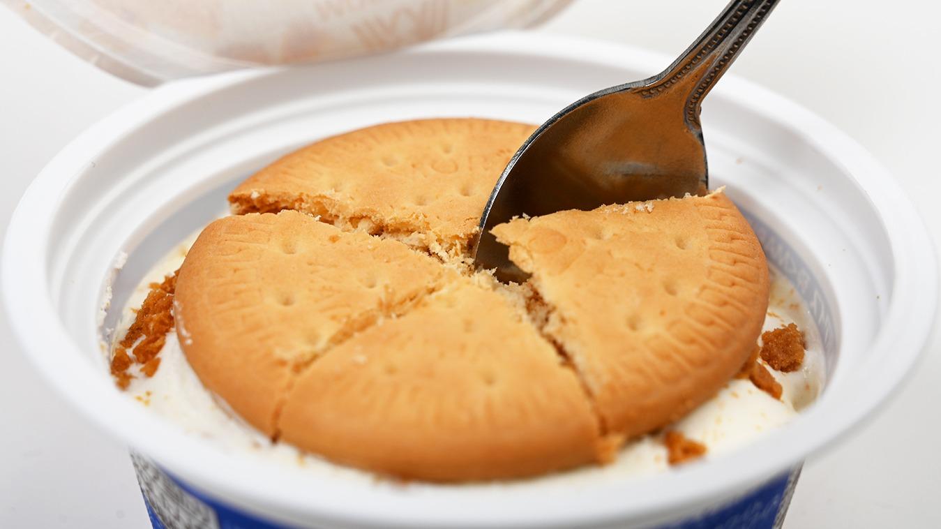 報告ビスケット×アイスの最強コラボ!砕いて混ぜて楽しむ!パリパリ&とろ〜り!混ぜるほどに変化する味わい