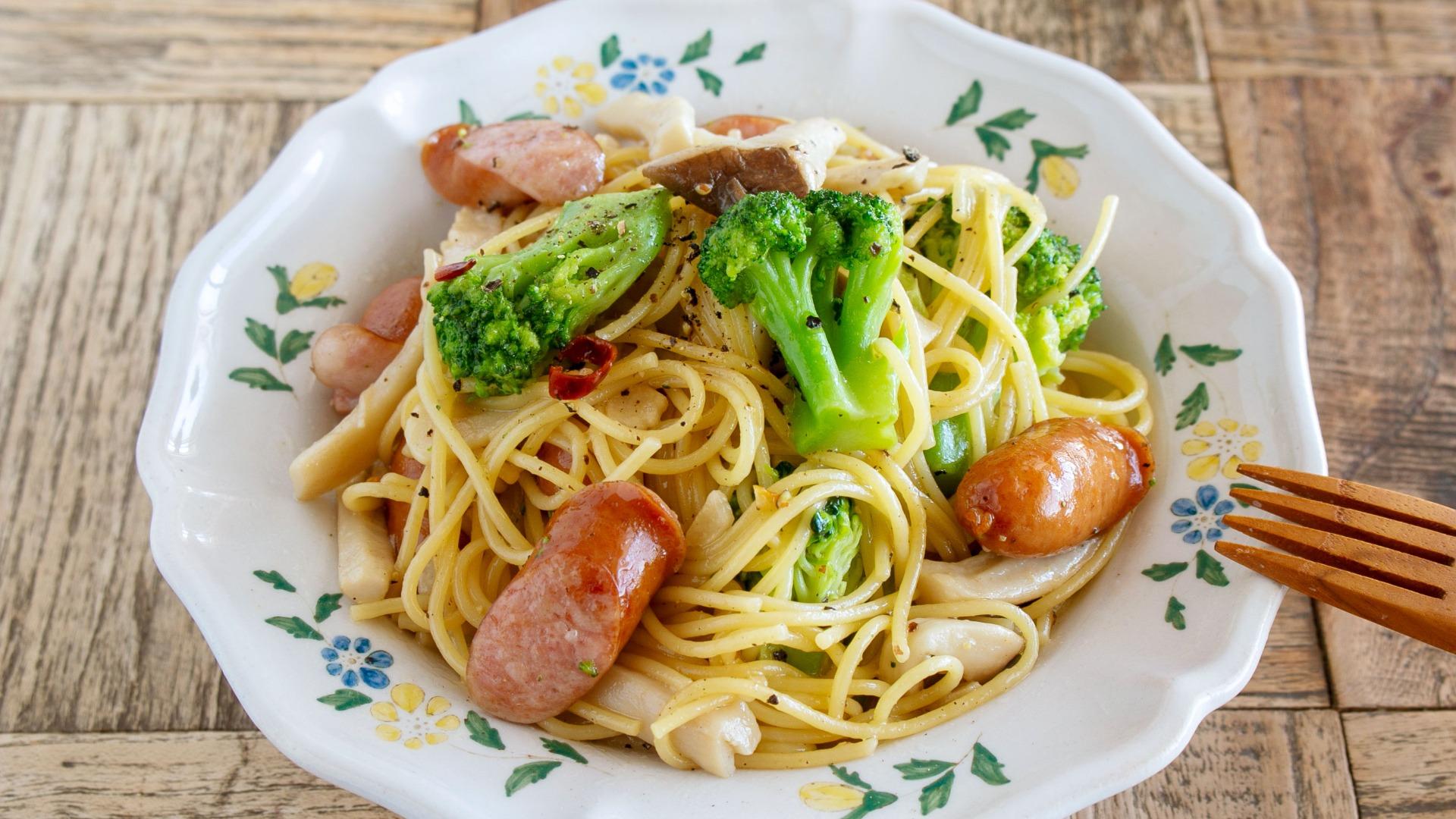 報告【家計応援】米が高騰の今こそ!フライパンひとつで簡単!ウインナーとブロッコリーの節約パスタ