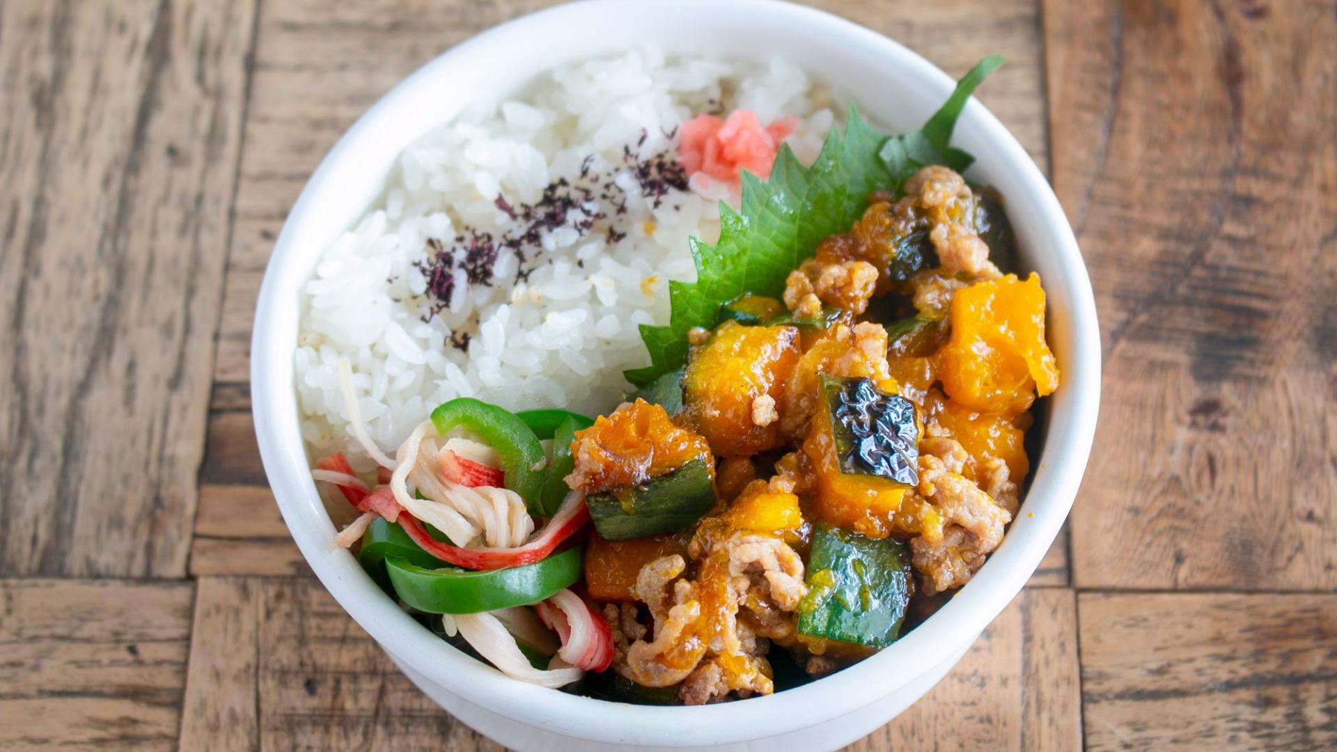 報告【煮込み不要】ほぼ10分で2品完成!ごはんに合うバリウマ「かぼちゃの甘辛そぼろ炒め弁当」
