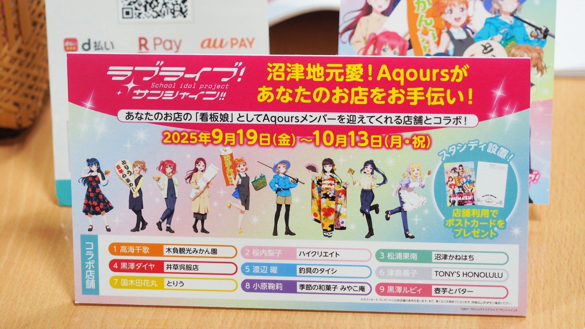 報告【沼津市】Aqoursが街のお店の看板娘に!10月13日まで市内9店舗がラブライブとコラボ企画開催中