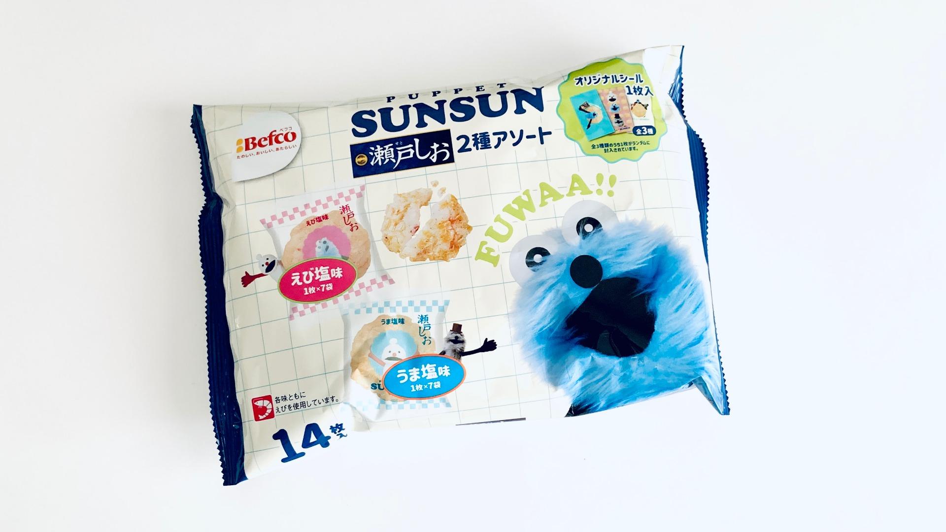 報告【パペットスンスン】人気のおせんべいと話題のスンスンがコラボ!今ならなんとシール入り!【瀬戸しお】