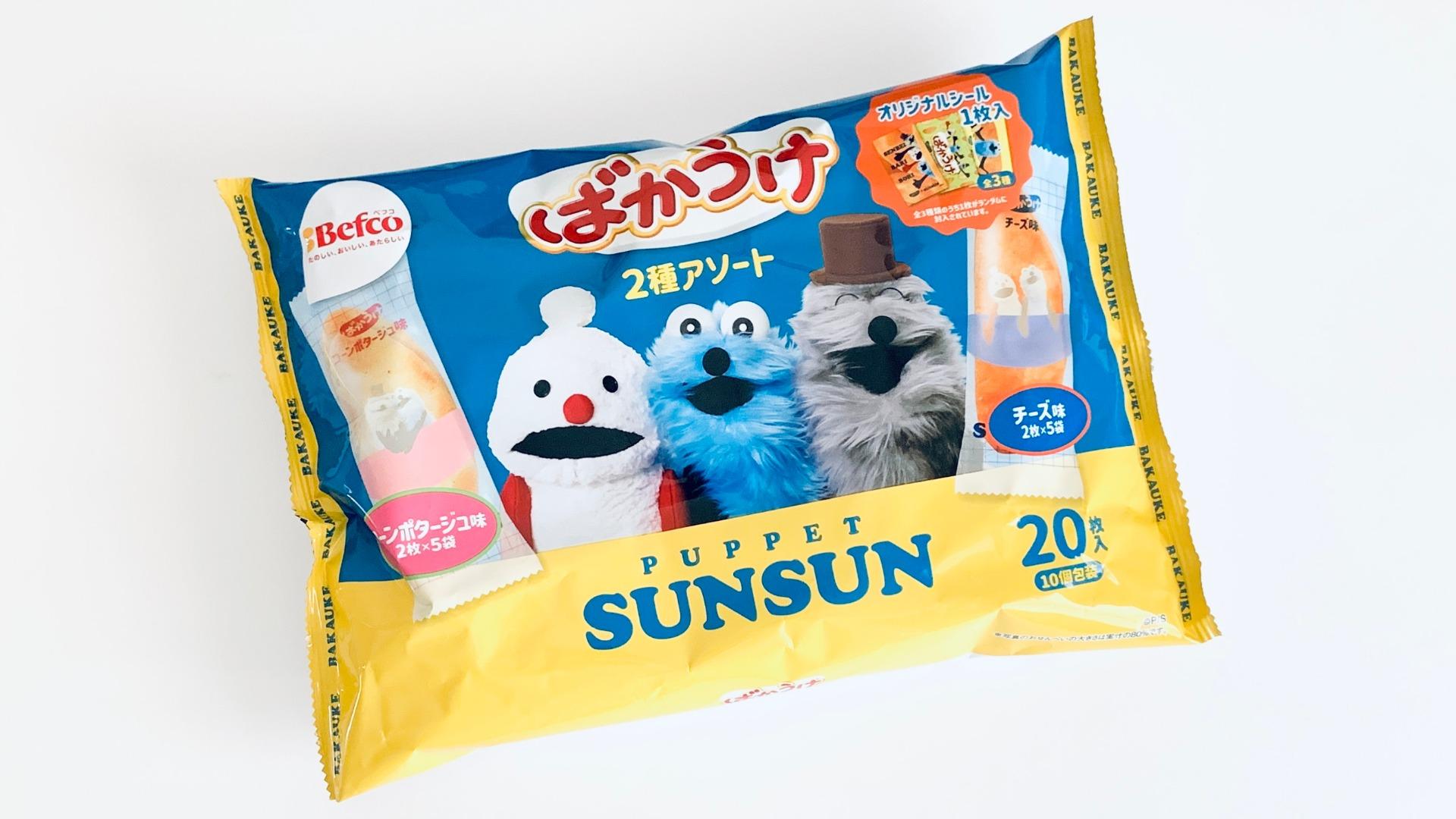 報告【パペットスンスン】今ならオリジナルシール付き!人気の米菓「ばかうけ」と、話題のスンスンがコラボ!