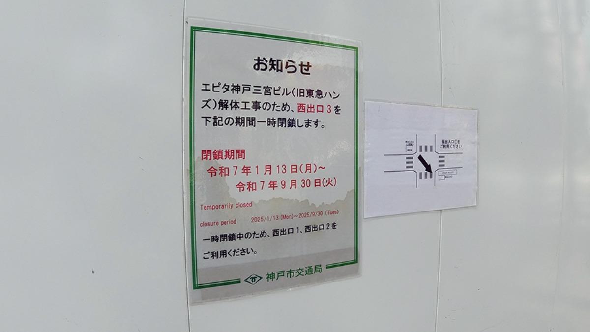 報告【神戸市】旧東急ハンズビルにあった地下鉄三宮駅の西出口が長期閉鎖中