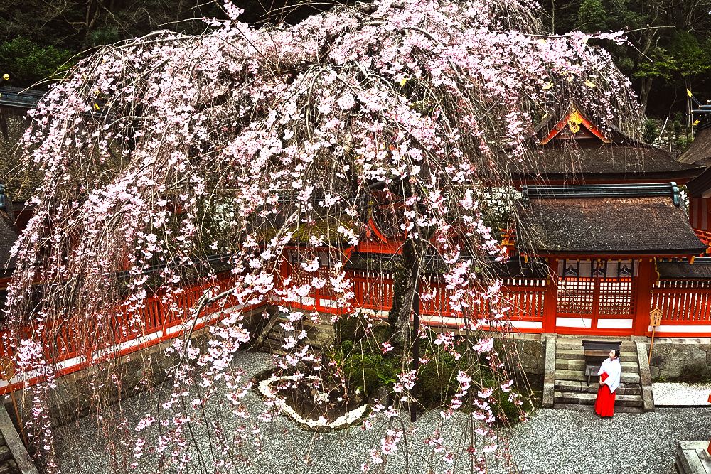 報告社殿彩るシダレザクラ 那智大社で見頃、和歌山