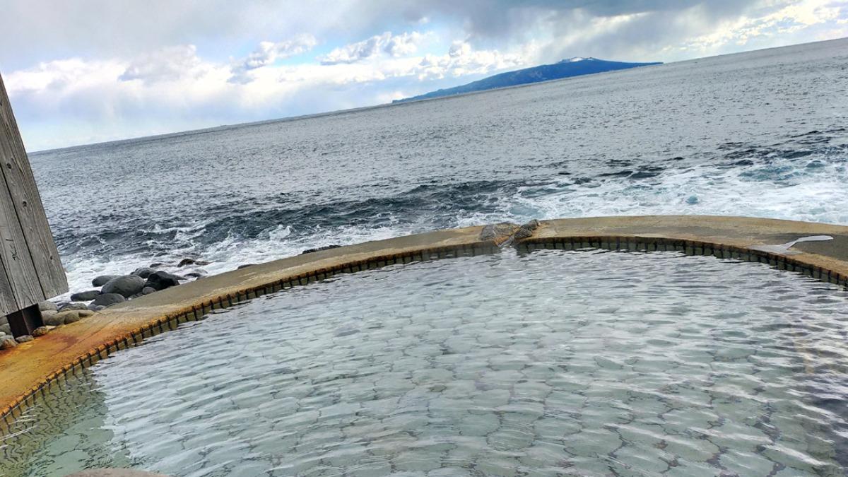 報告【アメリカが見える!?】海抜0mの波打ち際!伊豆大島を一望する絶景露天「黒根岩風呂」