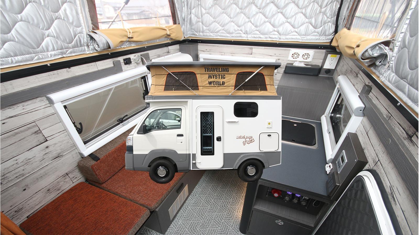 報告【エアコン付き】軽キャンピングカー、ミニポップフライヤーの装備が凄い!最強レベルの広さで新登場!
